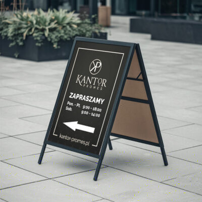Potykacze to skuteczny i widoczny sposób na przyciągnięcie uwagi klientów w przestrzeni miejskiej, przed sklepami, restauracjami czy podczas eventów. Praktyczne i łatwe w przenoszeniu, oferują dużą powierzchnię reklamową, idealną do prezentacji oferty, promocji lub komunikatu.
